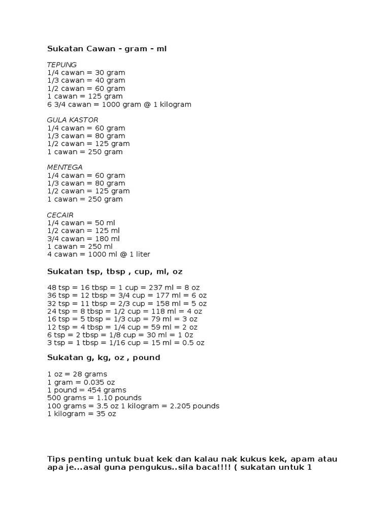 Sinar Tips Utk Tukar Sukatan Dari Gram Ke Cawan Facebook