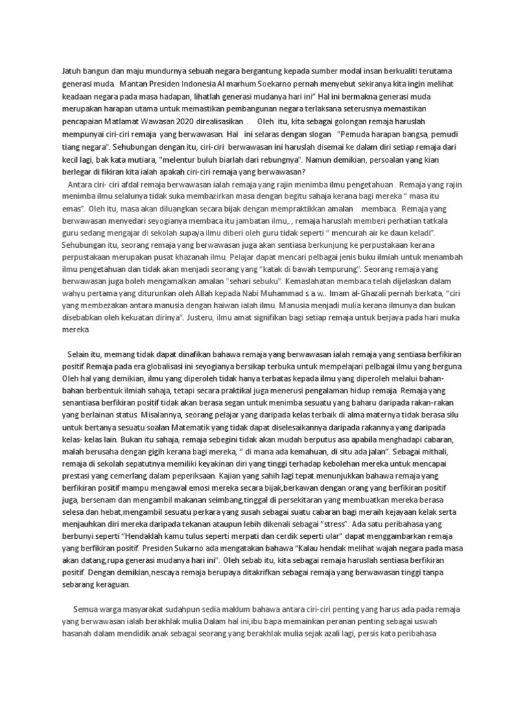 Ciri Ciri Generasi Berwawasan Karangan Spm