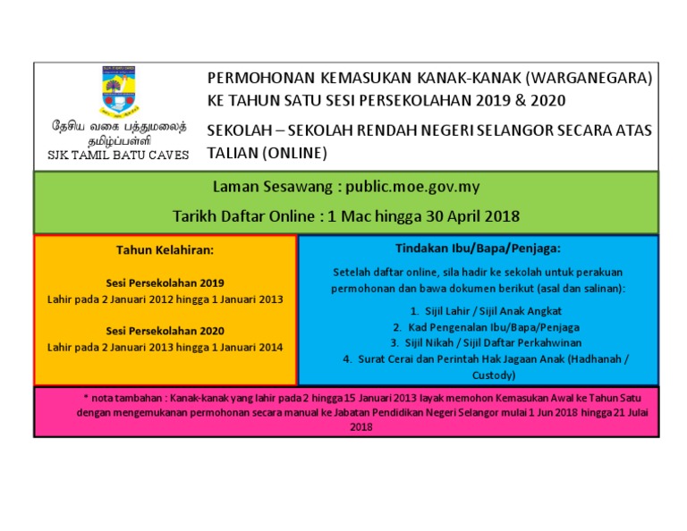 Pendaftaran Tahun 1 Online Bagi Sesi Persekolahan 2019 2020 Theasianparent Malaysia