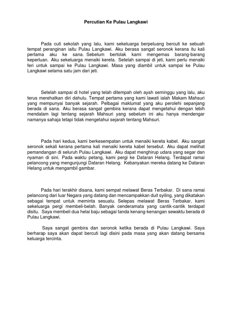 Contoh Karangan Bahasa Inggeris Tentang Percutian Di Pulau Langkawi