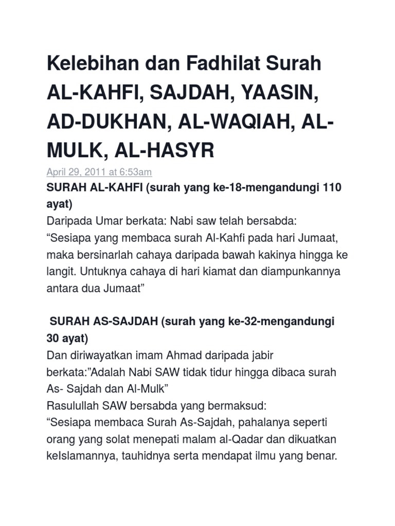 Benefit Of Reciting Surah Al Kahfi As Sajadah Al Waqiah Al Mulk Kutipan Agama Kekuatan Doa Sembahyang
